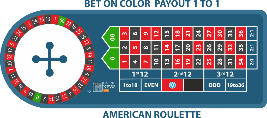 3. Färgsatsning – Det innefattar alla de röda numrena eller alla de svarta numrena på spelduken och placeras på “Röd”-rutan (alla röda nummer) eller på “Svart”-rutan (alla svarta nummer). Utdelningen är 1 mot 1.